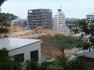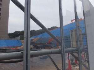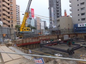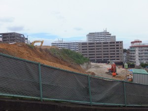 先日、10日土曜日、日差しもなく、さわやかな秋空の下、城南線沿いの開発中のマンション工事現場をのぞいてみた。