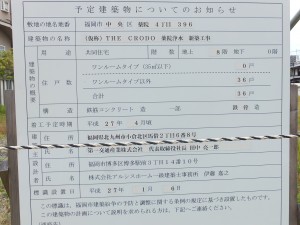 まずは、桜坂で三菱地所レジデンスと西鉄がJVで開発中の大型物件は、「仮称・桜坂3丁目計画」。旧九州電力城南クラブと桜坂研修所に322戸が開発されるもので、ゼネコンは三井住友建設、今年7月着工されており、竣工は平成30年5月31日。