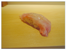 当然のことながら、その店では脱法ドラッグたるタバコは店内では決して吸わせない。冷蔵庫は氷式にて、ネタの旨みを閉じ込めている。先ずは赤酢の効いたそのシャリ。宮城県県央部の一部でしか獲れない至高のササニシキ。こいつは人肌温度が最も旨い。握った際に空気をまとい易いよう、通常であれば古米を配合させるところ、全粒新米でありながら粘りを押さえ、一粒一粒がハニカム模様に並ぶその姿は、シャリにも“踊り食い”があるのかと思えるほど口腔内で息を吹き返し、ネタ要らずの旨さ。更に、ネタによっては炙りで温度変化を喰らわせる。例えばそれは、皮の一部を切った上で軽くあぶり、身と皮との伸縮率を計算したうえで供される。前述のシャリと皮と身と三位一体の味わいに温度変化も楽しませる3D技法は、同業さえも唸らせるもの。極上の味と香りを漂わせるアナゴは瞬く間に口の中で蒸発。煮ツメに水あめ臭さが無かったことは驚き。鉄砲巻きの干ぴょうは栃木産の無漂白品。堅い食感は素晴らしい。ガリは生から作り、ワサビは静岡県御殿場山の真妻を使用。一般的には実生という品種のワサビで、一年で収穫可能だが、真妻は二年かかる。普通のワサビであれば夏場は特に、単なる緑色の大根おろし(笑)。水っぽくて風味も絡みも無いが、ここのワサビはネタのポテンシャルを顕在化させるもの。ネタ毎に仕事を施した純「江戸前寿司」は、巷の『江戸まね寿司』とは一線を画す。彼の技の前に、食した誰もが鮨の概念が根底から覆されるだろう。