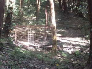 猪が多いのだろうか、木製の大きな罠と金属製の少々小ぶりの檻罠があったが、使われているような気配なし。