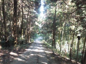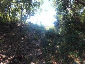 山道入口に至るまで、既に5キロほど歩いて来たのだが、山道には木漏れ日が差し込み、暑くもなく涼しすぎもなく、勾配もそこそこあるのだが、それほどきつくはない。