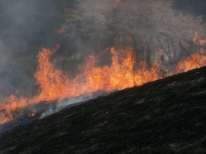 “ちょっと前に自分が放った火が燃え広がり、一面の草の花が焼けている”というのが、専門家の解釈。