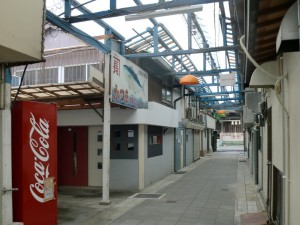 神社で市場な商店街と分譲木造アーケード。 拡大して説明用に加工したうえ、点画を加えたものがコチラ。