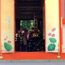 無料駐車場に車を乗り入れると、ちょうど観光を終えた中国の方と思しき大勢の観光客の一段が大型バスに乗り込んでいるところだった。「もしかして観光客でごった返しているのでは?」と訝ったが、境内に足を踏み入れると意外に閑散としており胸をなでおろす。やはり伝統建築は落ち着いて拝観したいものだ。