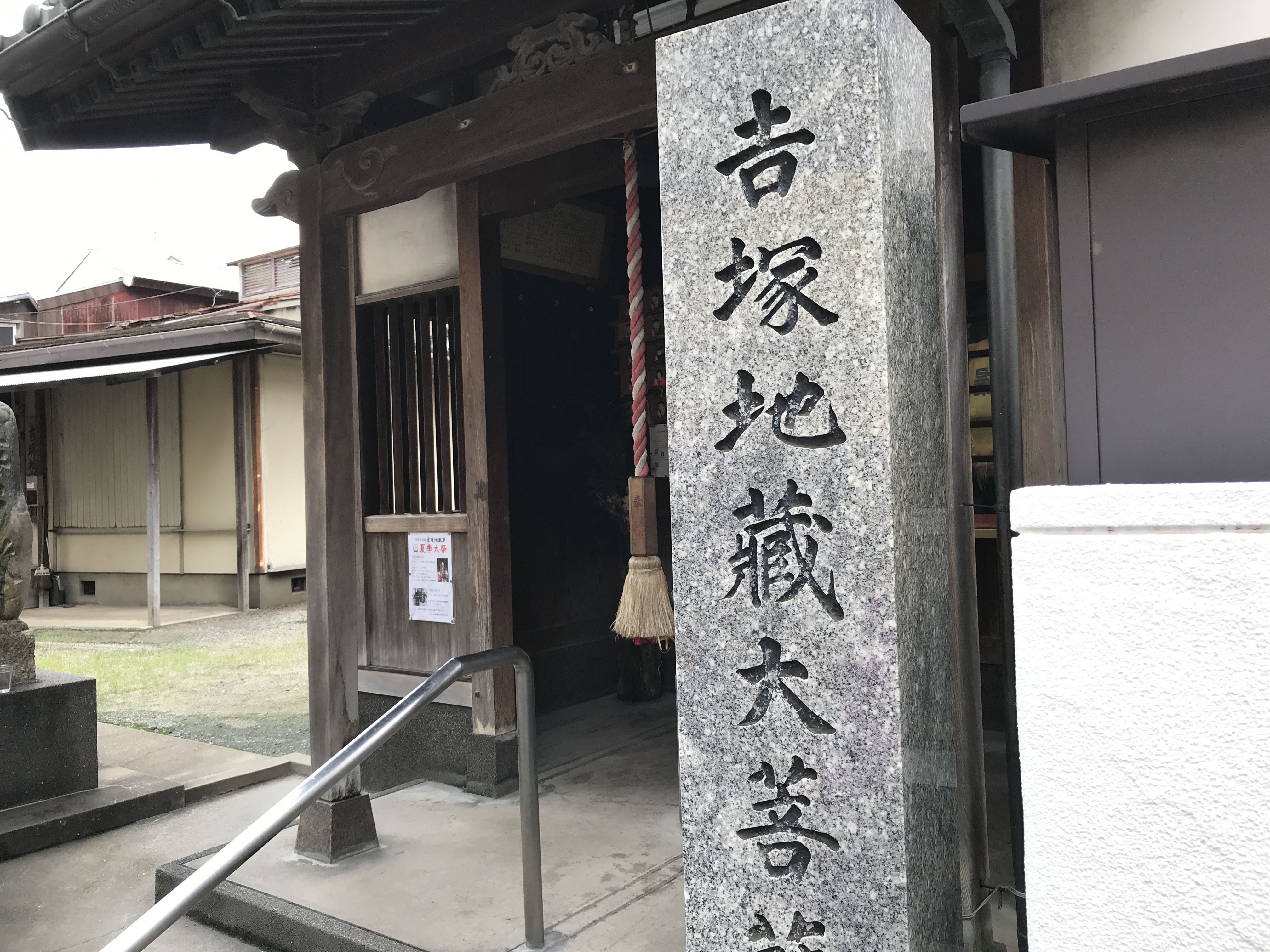 「吉塚地蔵堂」の入り口には、吉塚地蔵大菩薩と書かれた石碑が置かれています。