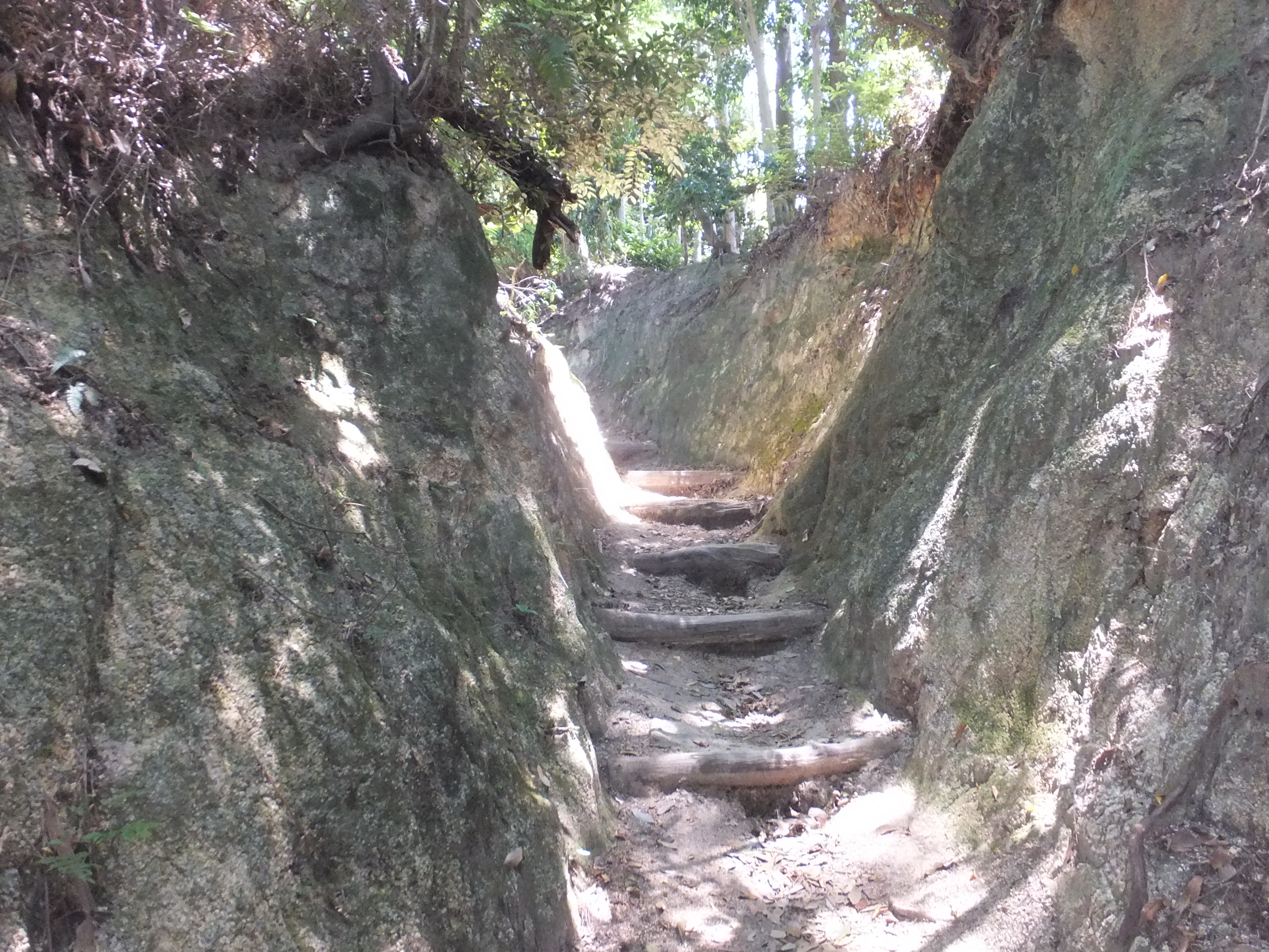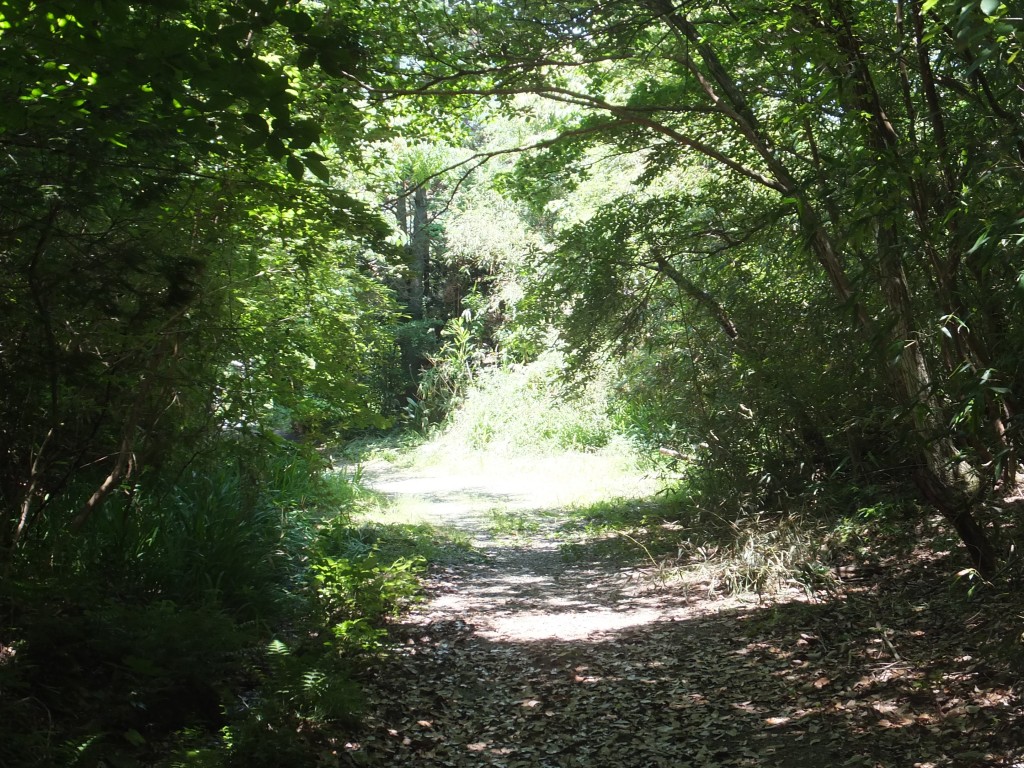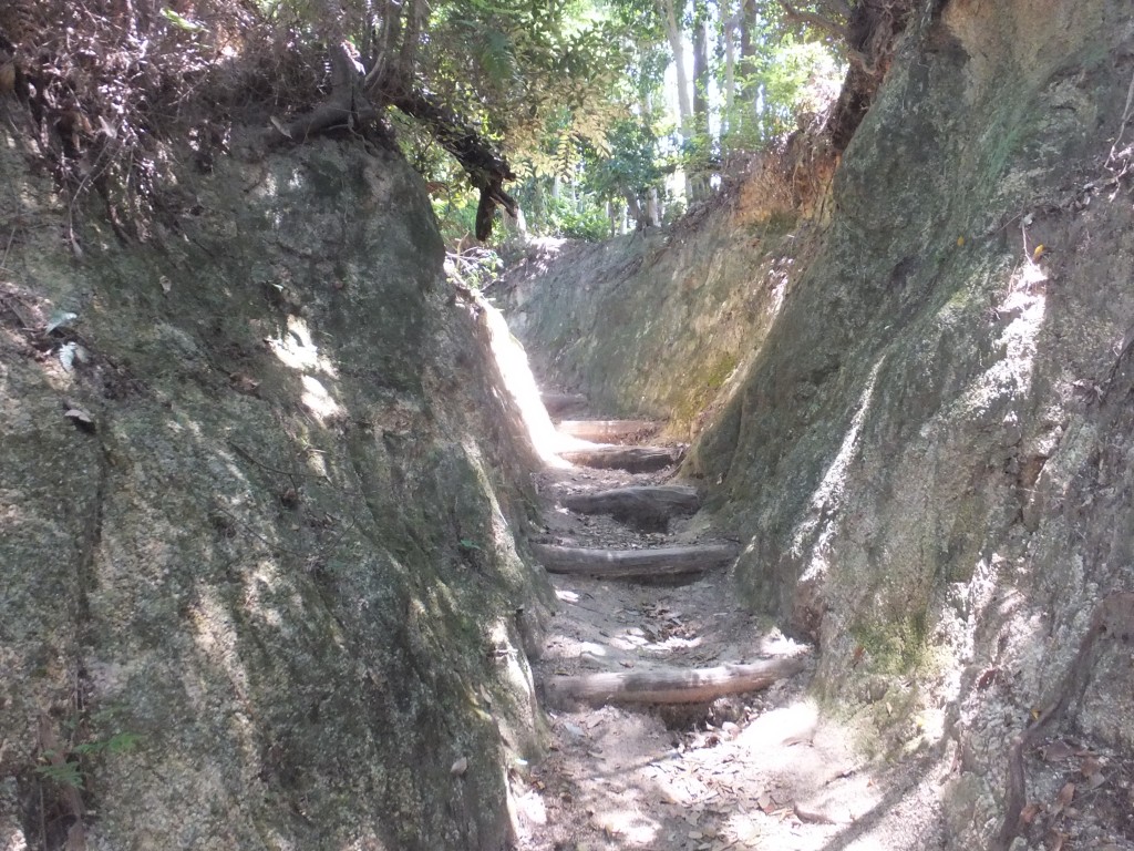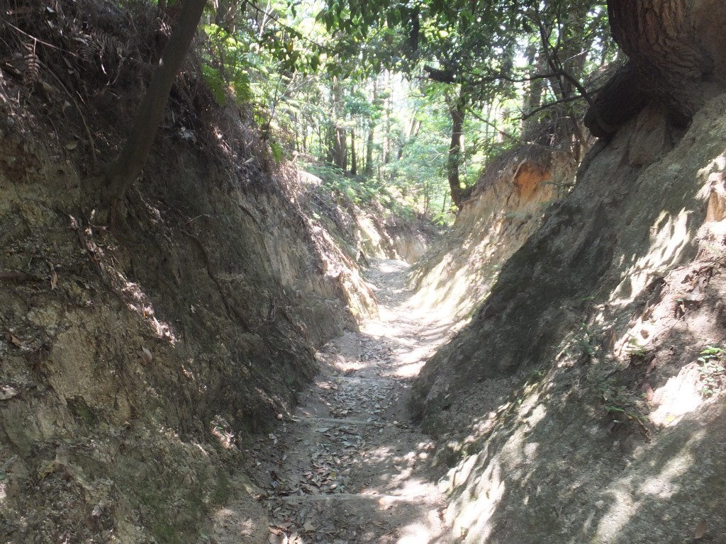八合目の当たりは堀切か、掘割のような参道。