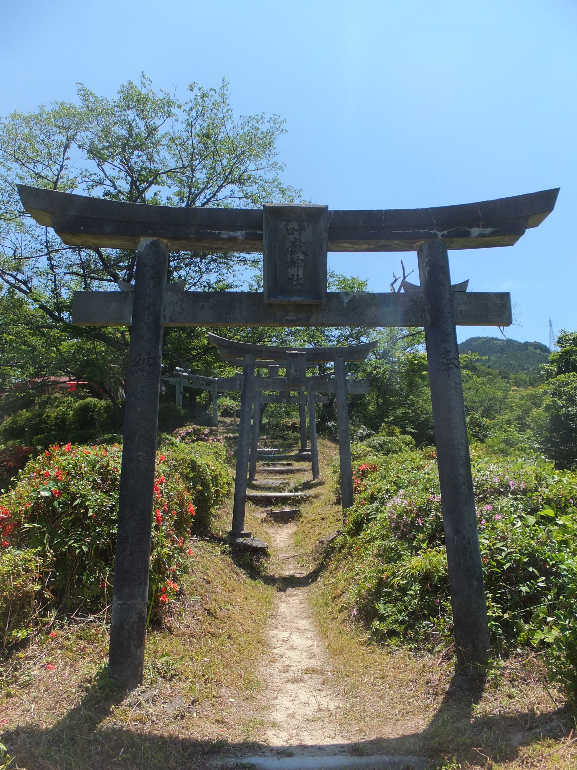 叶獄神社の扁額が掲げられた鳥居が20基ほど連なり、着いたところが叶獄神社遥拝所。