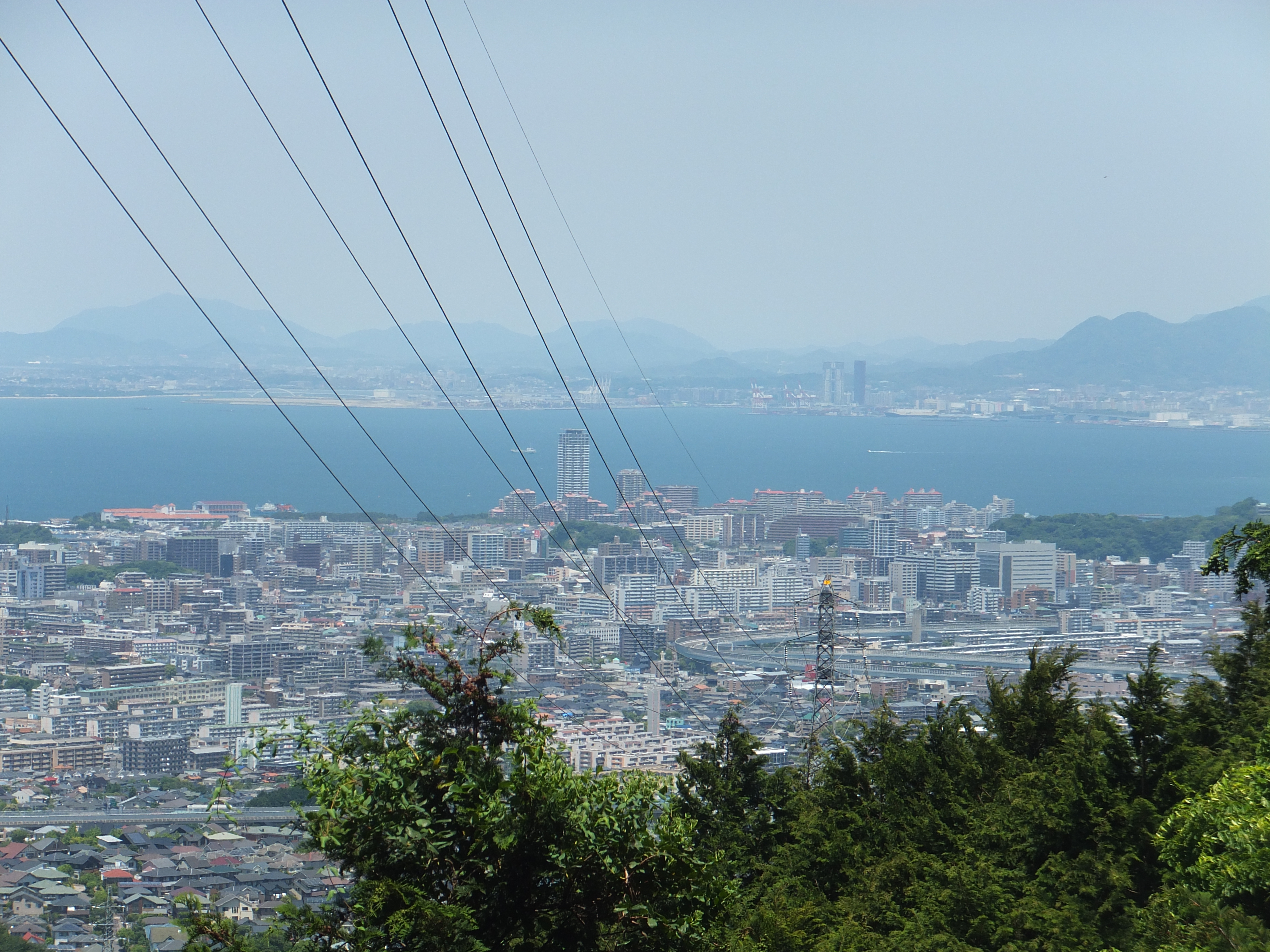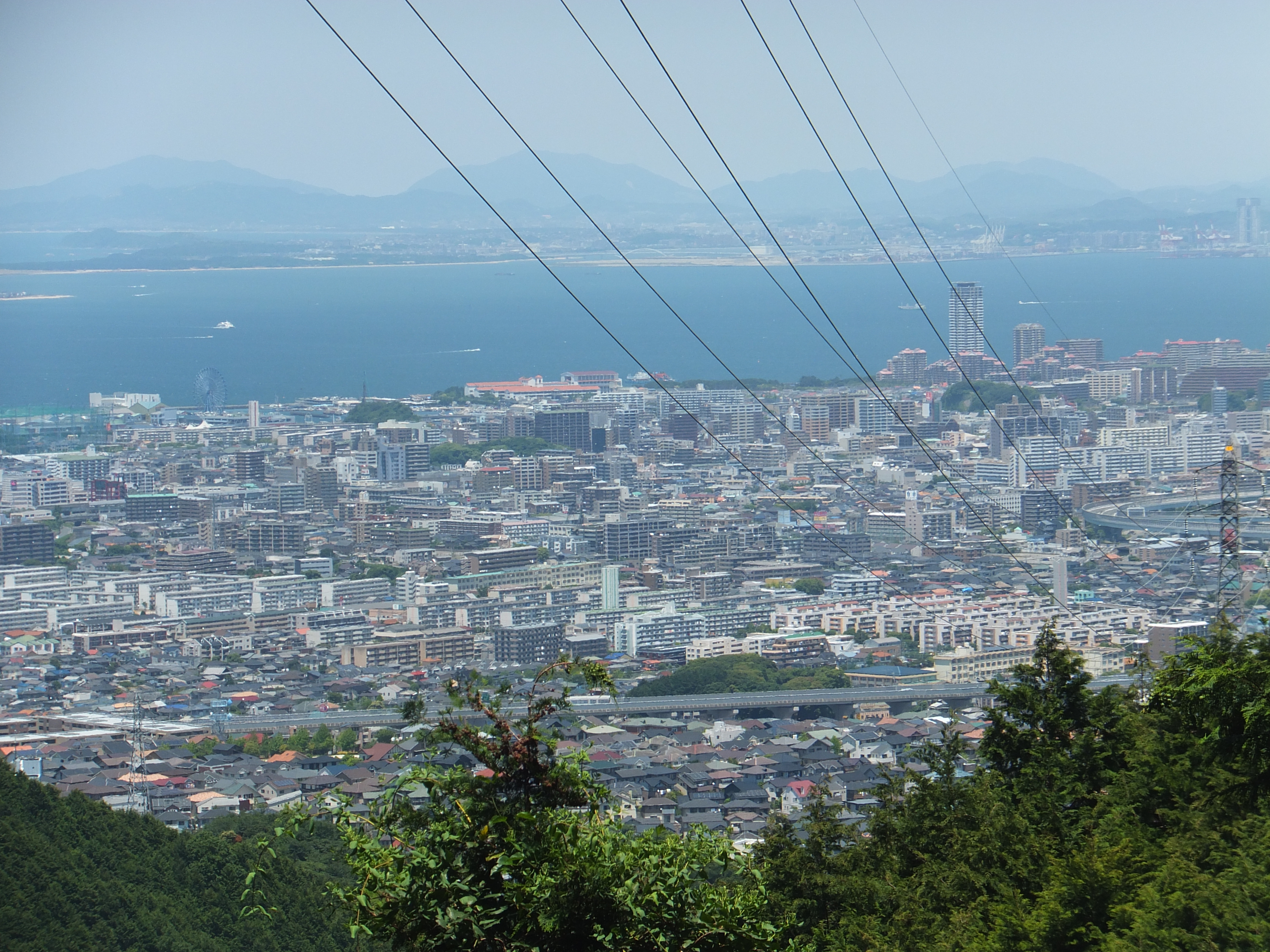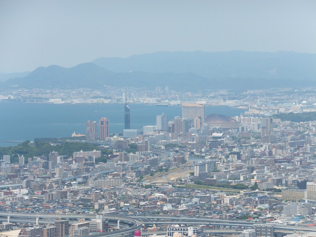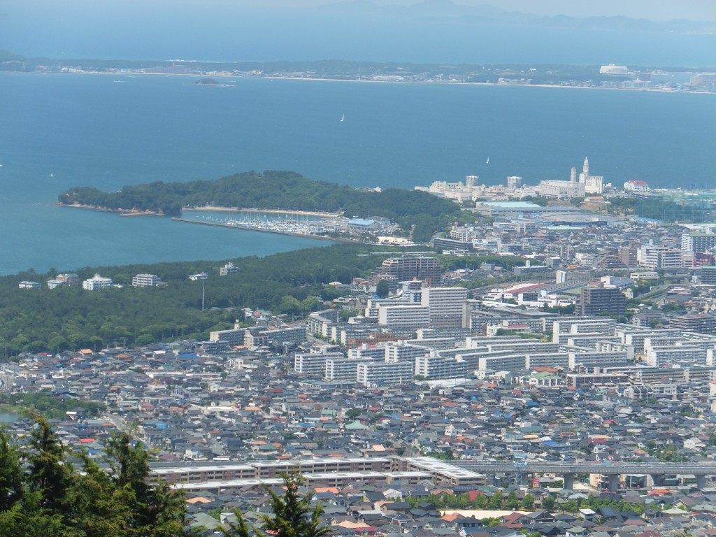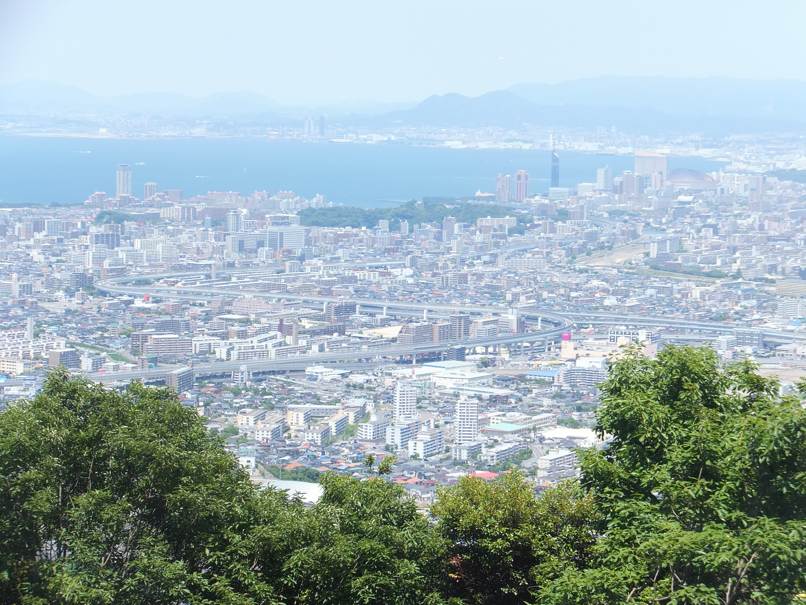 左を見ると、小戸ヨットハーバーにマリナタウン、博多湾をはさんだその奥には、