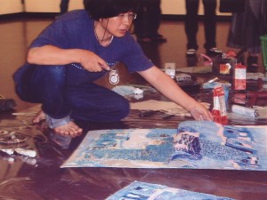 作品はそうした「顔魔術」がテーマの銅版画・木版ミクストメディア、三次元ミラー絵BOXなど約40店です。