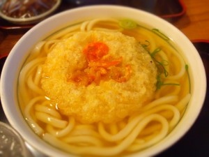 今でいうトッピングなしの素うどんを注文し、店のおばさんに頼んで「天かす」を入れて貰ったもので、小さな海老が入った、「海老天」は滅多に食べられなかった思い出が懐かしく、今でも時々食べに行く。