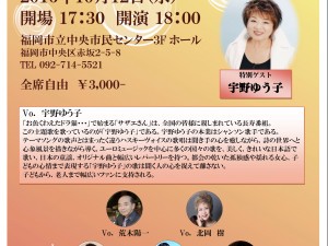 10月12日(水)18:00から、福岡市中央市民センター3Fホールにて、第4回福博シャンソンライブが開かれる。