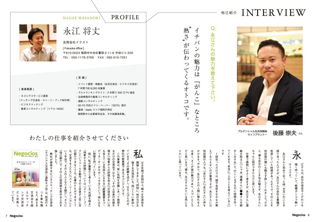 パンフレットやホームページ制作、イベント運営などを手がける、合同会社イクスト(福岡市中央区、永江忠之氏)は、12月から営業マンの“人となり”をストーリーで伝える、営業と集客のツール、「ネゴシアス」サービスを開始する。