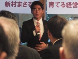 新村まさる福岡市議会議員(37歳)の市政報告会を兼ねた納涼会が、“新村まさるを育てる経営者・有志の会(中尾光明会長、久田賢太青年部会長)“の主催で、KKRホテル博多(中央区薬院)のグランドマスターズカフェにて、先日7月21日(金)に開かれた。