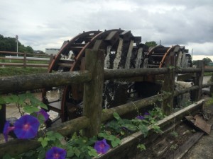昨年の7月5日の集中豪雨で、流木や土砂で一帯が埋め尽くされた朝倉市菱野にある日本最古の(国史跡)三連水車が6月17日より今年も稼働し始めた。