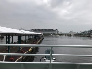 志賀島へ出ている船は、博多ふ頭の「ベイサイドプレイス」から出ています。
