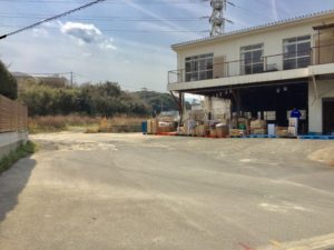 福岡外環状道路(202号)野芥交差点を東へ約1.5km進む。福大トンネル手前、梅林駅入口を右折。300m程直進し、梅林中学校入口を左折して100m程進んだ右側(県道49号線沿い)。現在、大手宅配業者の集積所として使われている。