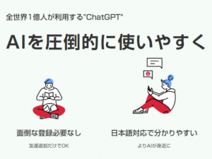 もはやこれまで、と思っていたら、LINEに「AIチャットくん」という友達を追加するだけでChatGPTの機能が使えるというではないか。
