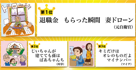 この「サラ川コンクール」は回を重ねること今年で29回を数え、今回も4万句に近い応募があり、その中から特に笑いを誘う300句が掲載されており、今年の第1位は「退職金 もらった瞬間 妻ドローン」で詠み人は元自衛官、身につまされる人も多いはず。