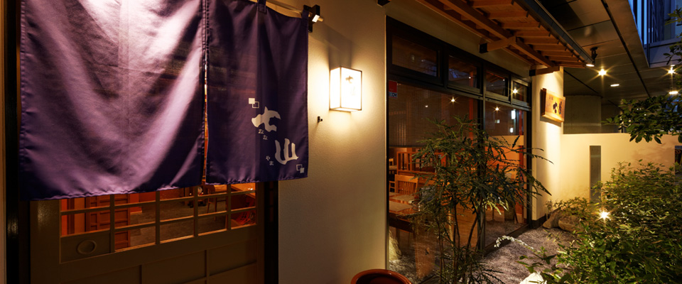 薬院大通り近くのビルで営業していた「七山」が、2年前に中央区赤坂に向かう一方通行の道路に面し、店の前に小さな庭があるビルの1階に移転した。