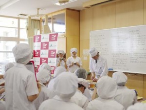 第二部では、ミシュラン一つ星「御料理まつ山」の松山相三氏や、ミシュラン二つ星「お料理宮本」の宮本大介氏など6名の料理人が、学校栄養職員40名に、学校給食を想定した調理のコツなどを伝授する。