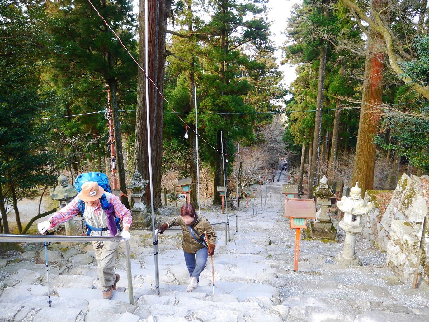 英彦山の参道は、銅(かね)の鳥居から奉幣殿まで約800m、高低差160mあります。